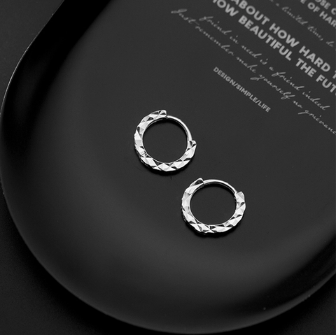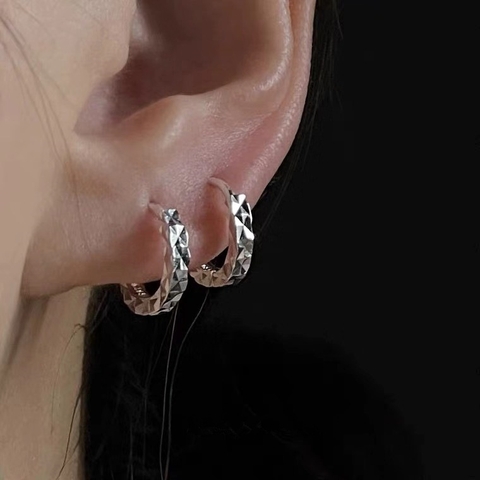 Chiếc khuyên tai chuẩn Bạc S925 cao cấp thiết kế dập chìm nổi lấp lánh, thích hợp cho cả 2 phái.