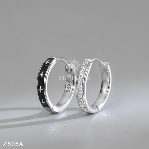 Khuyên Z505A chất liệu Bạc S925 gồm 2 mặt trắng đen có thể đảo chiều để đeo được 2 kiểu phong cách khác nhau.