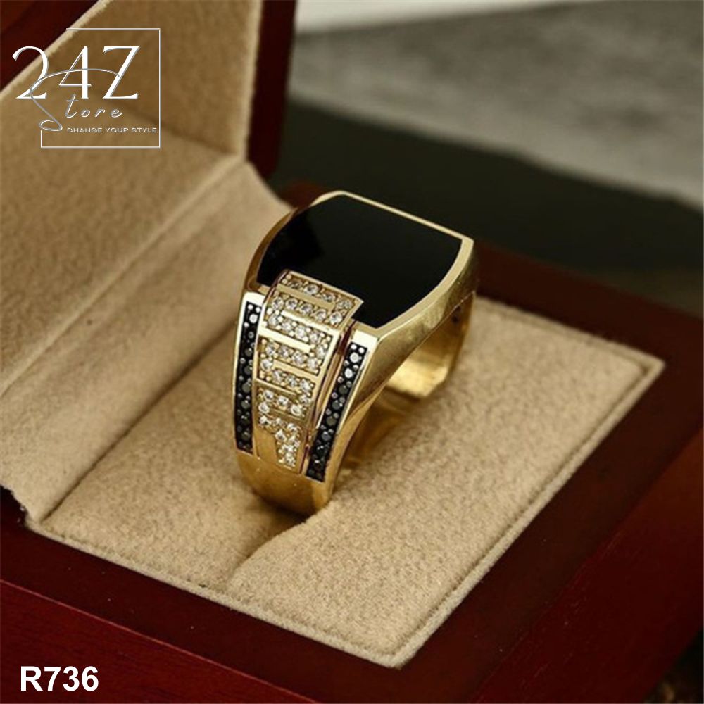 Nhẫn Nam thời trang Mr.Elegant đính đá CZ 8A R736- 2 màu Vàng, Bạc